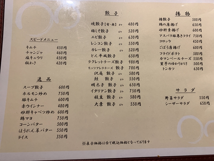 他にも沢庵や変わり種の餃子があります。オーナーが一つ一つ実験をしては調整して作った研究成果です。