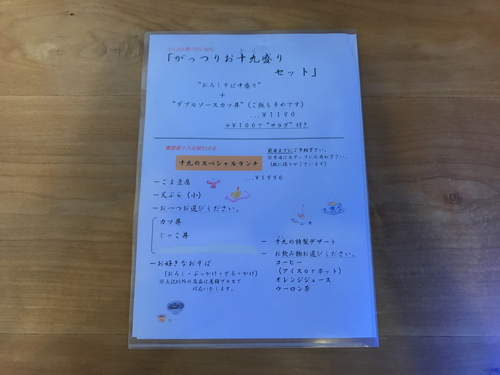 | 店名 | 蕎麦屋 十九(とく) |